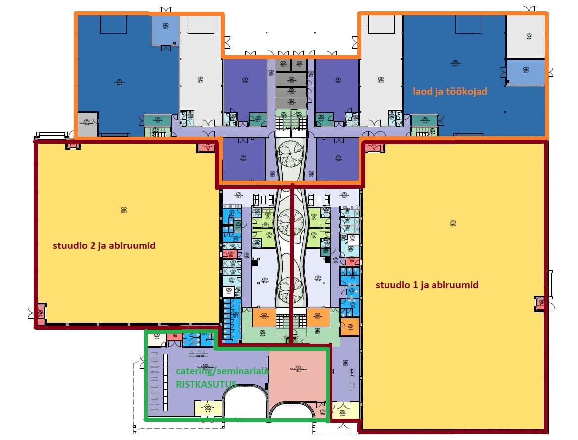 on 2000 m2 suurune suurem stuudiohall, mis sobib just filmide ja seriaalide tootmiseks - eraldi sissepääsud raskeveokitele otse stuudiohalli, stuudiolae töökõrgus kuni 18 m, helikindlad seinad, tamburiuksed. Produktsiooni tööd toetavad bürooruumid. Tutvu stuudio tehnilise kirjelduse ja abiruumidega lähemalt lingil.